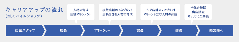 当社は、『お客さまから求められる人づくり』にとても力を入れています。例えば、モバイルショップに配属されれば、スマートフォンの専門的な知識にとどまらず、インターネットに関すること・電気に関する事などの知識も必要です。ですが、それ以上に必要なのは、お客さまと真摯に向きあえる『人柄』です。内定者研修でも新入社員研修でもビジネスマナーや仕事に対する考え方などはしっかりと教えていきます。外部には頼らず社員が、社員を育てる【人づくり】を大切にしています。